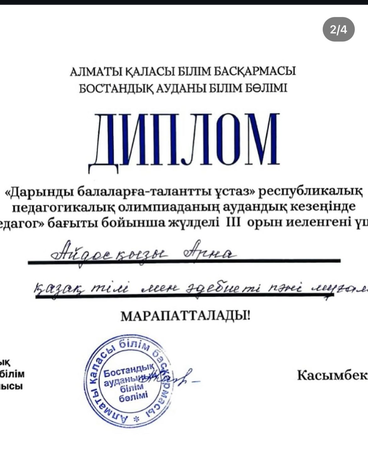 СҮЙІНШІ! 🏆✨ Республикалық жарыстың жеңімпазы атанған Айдосқызы Арна тағы бір биік белесті бағындырды! 🎉 2 күнде – 2 үлкен жетістік! Бұл – еңбектің, білімнің және табандылықтың жемісі. Қазақ тілі мен әдебиеті пәнінің мұғалімі, нағыз дарынды жас, б