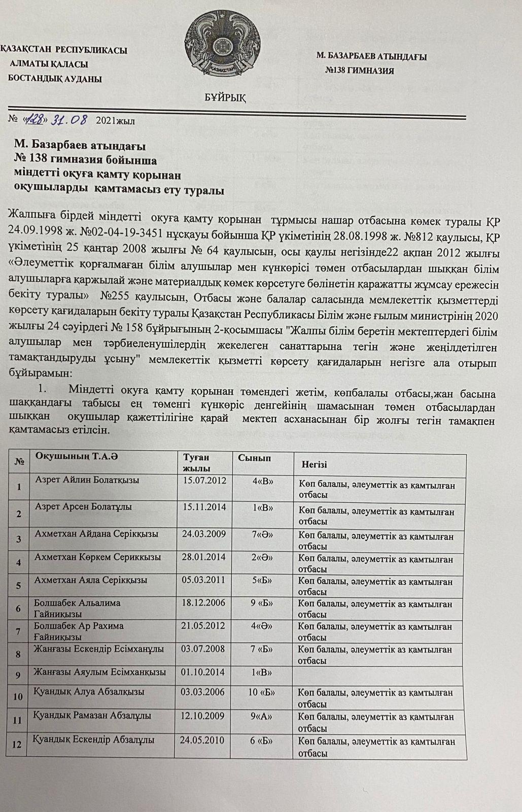 » » 2021-2022 оқу жылы Жалпыға бірдей оқуға қамту қорынан оқушыларды қамтамасыз ету туралы
