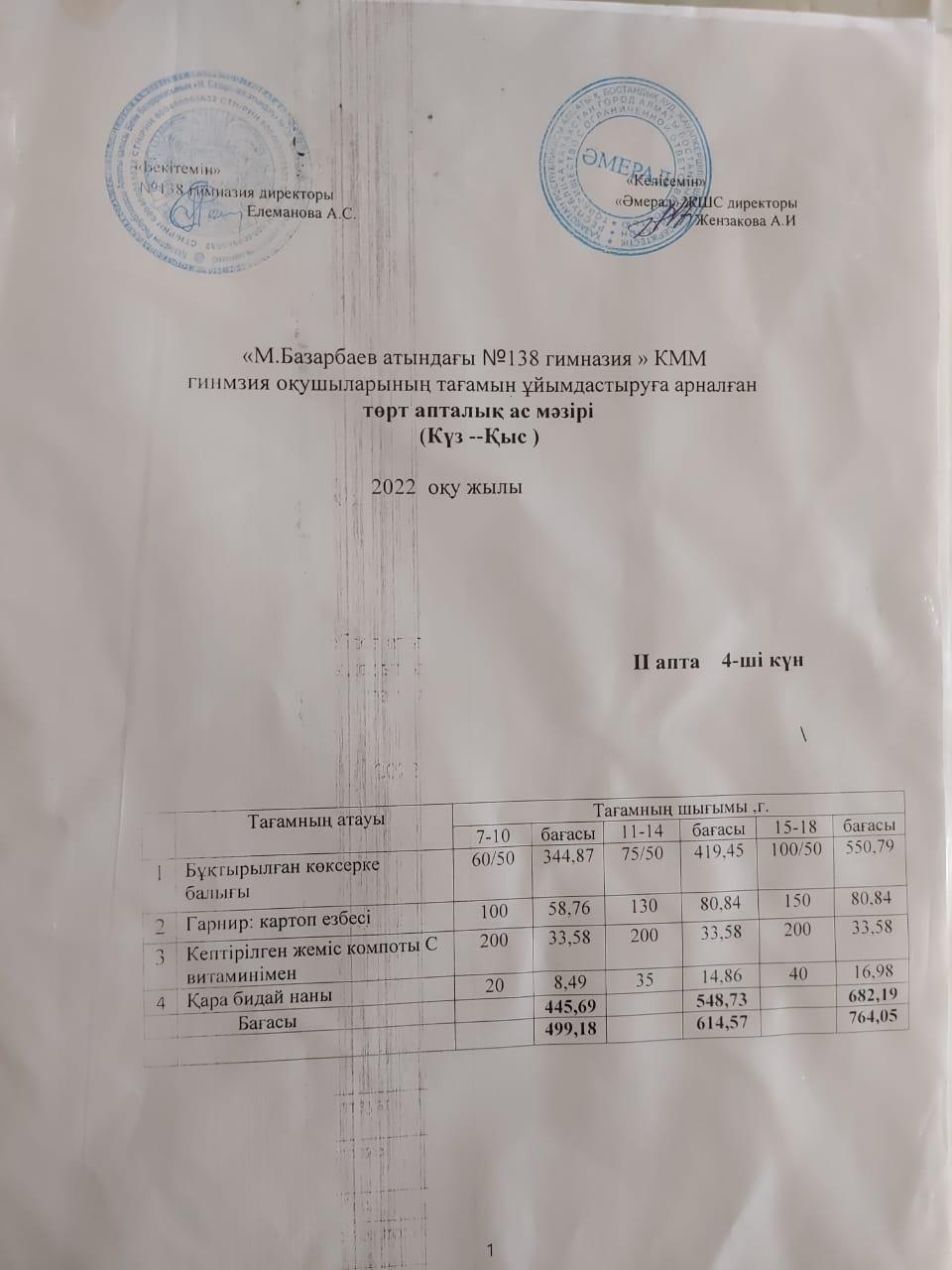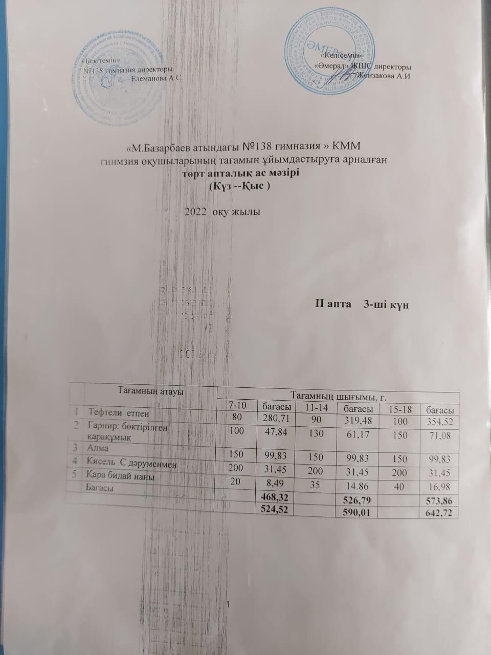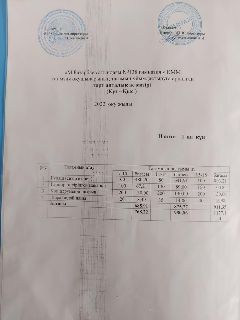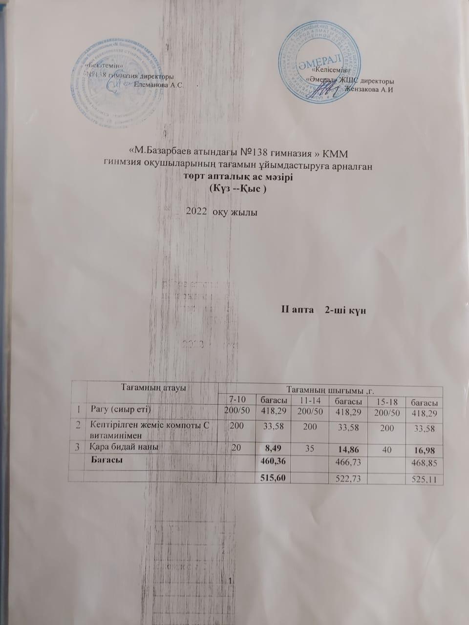 Асхана мәзірі 2 апта